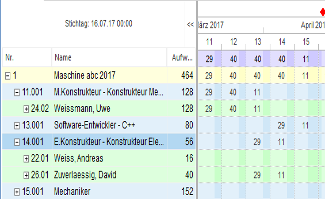 Two variants of resource planning, such as resource-constrained „with fixed resource capacity“ as well as time-constrained „with fixed task and project duration“, are available.